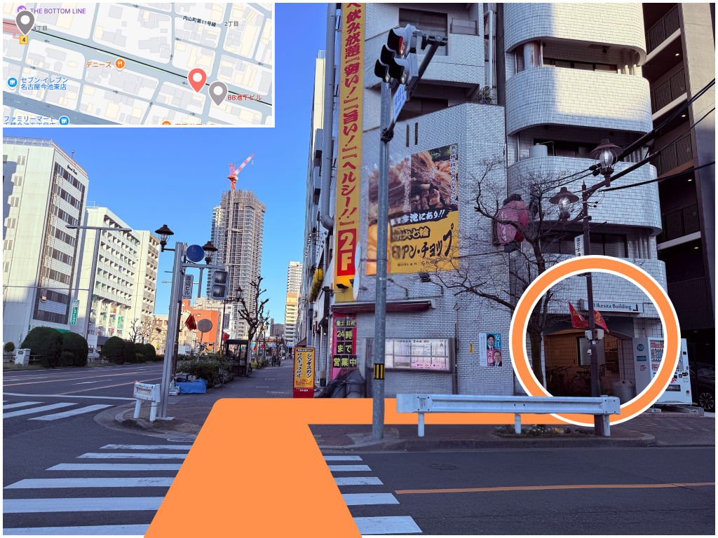 横断歩道を渡って、すぐにスタジオのあるビルに着きます!